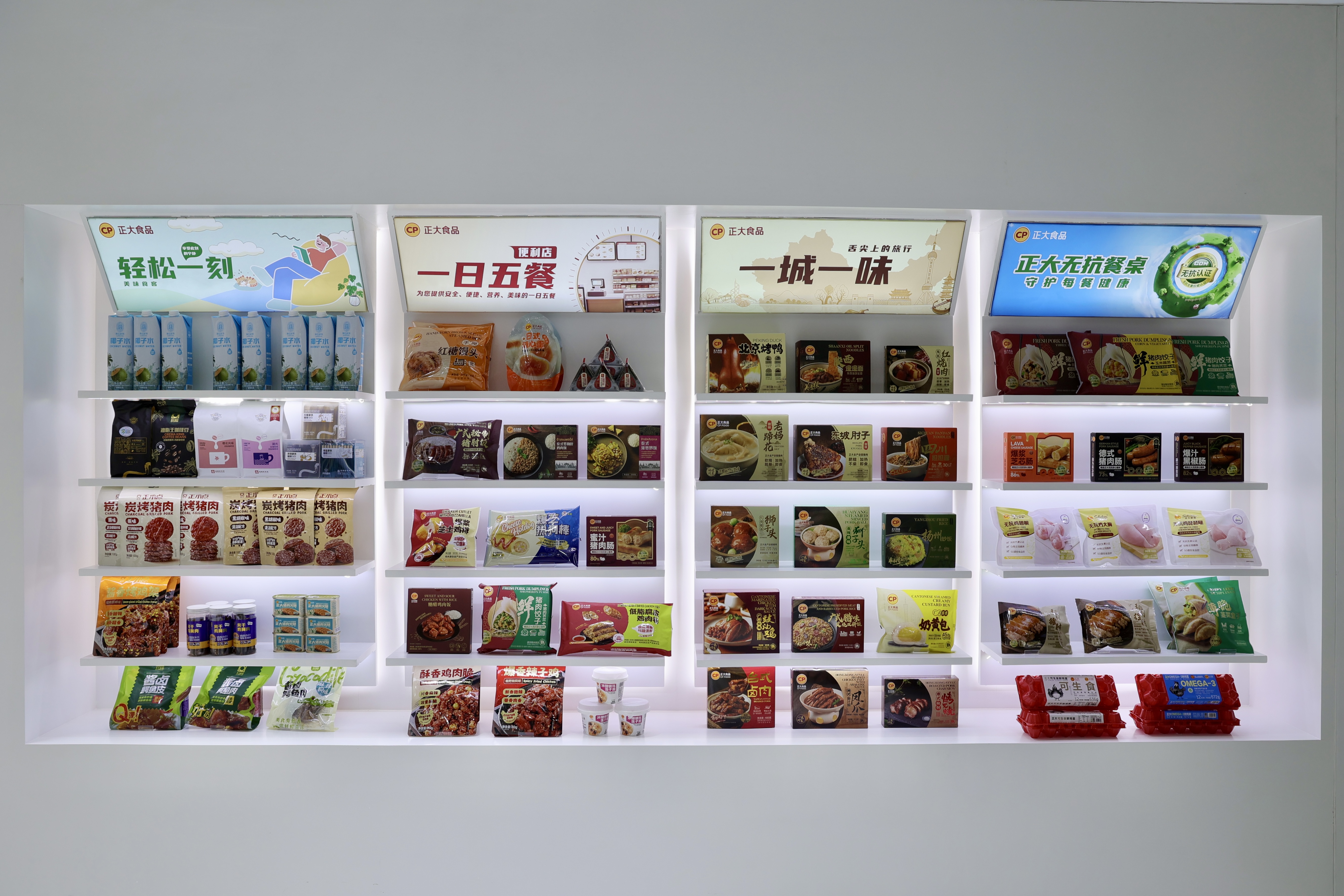 ▲現(xiàn)場特別設(shè)立四大主題食品展示區(qū):滿足全時(shí)段需求的“一日五餐系列”,踐行安全承諾的“無抗餐桌系列”,還原地道風(fēng)味的“一城一味系列”,以及包含椰子水、咖啡、炭烤豬肉等產(chǎn)品的“輕松一刻系列”,充分展現(xiàn)了正大集團(tuán)為消費(fèi)者提供安全、健康、營養(yǎng)、美味、便捷食品的強(qiáng)大能力。