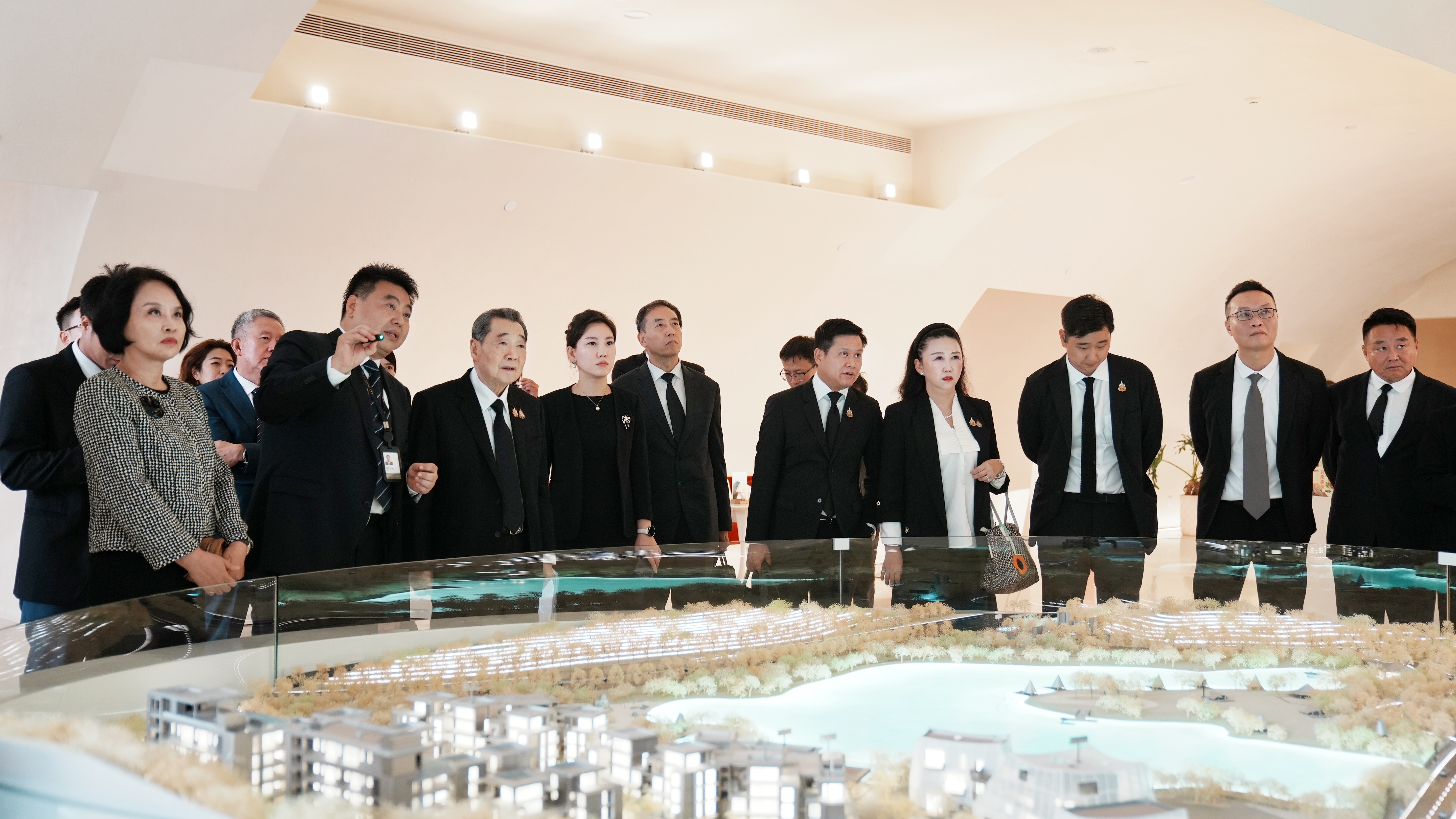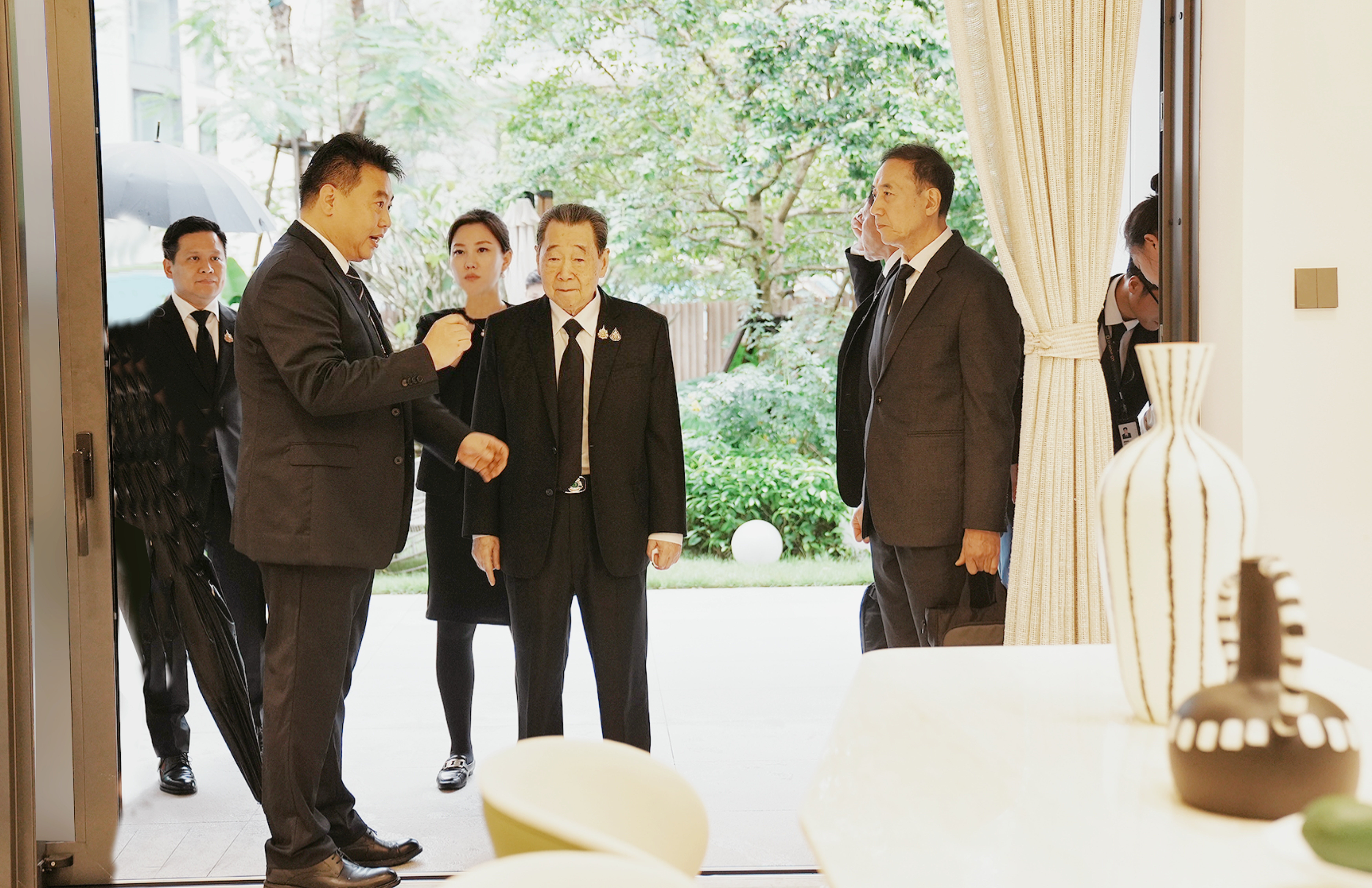 ▲謝國民集團(tuán)資深董事長參觀正大·太陽河咖啡小鎮(zhèn)樣板間。