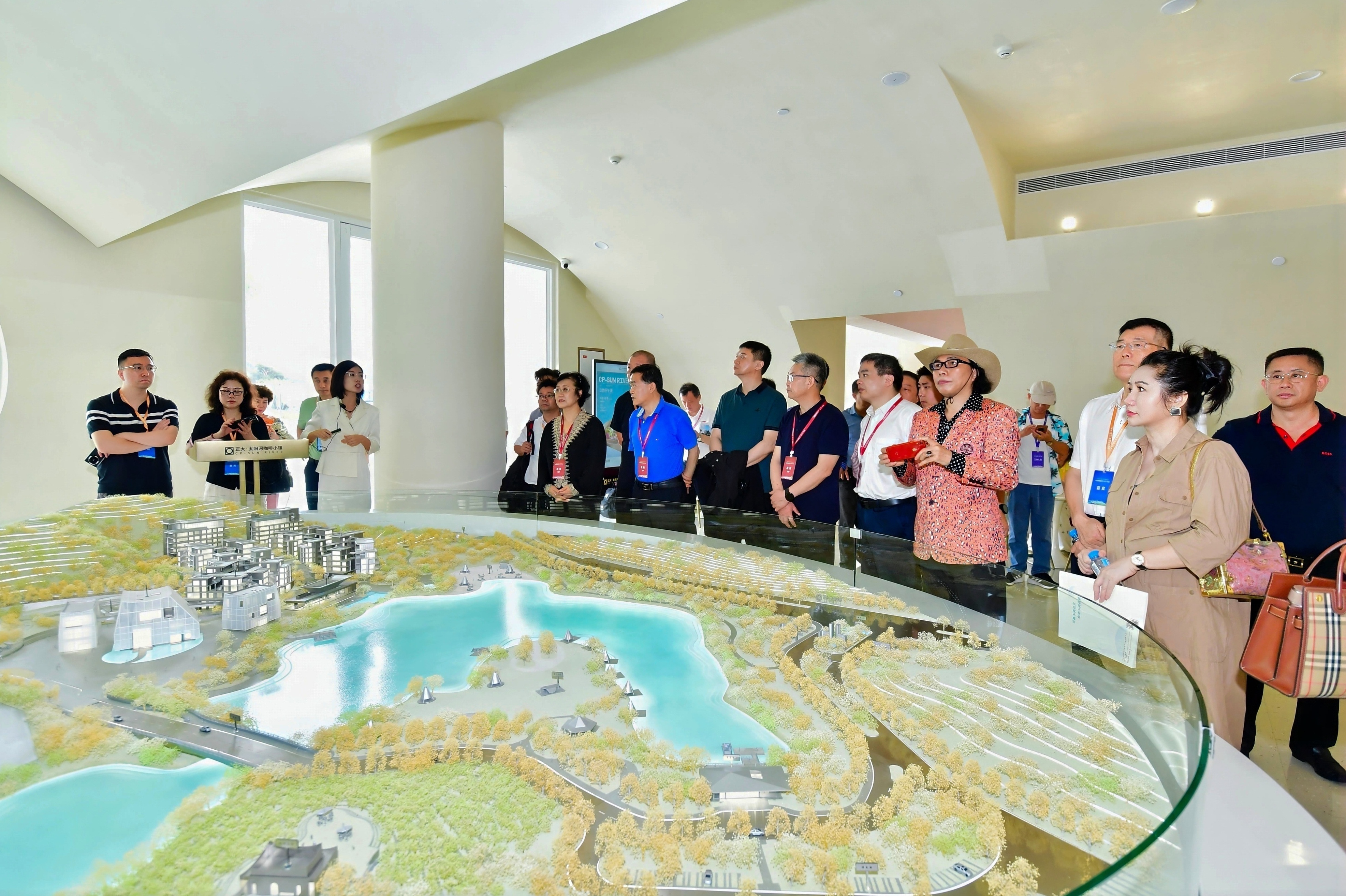 在正大?太陽河咖啡小鎮(zhèn),謝國民集團(tuán)資深董事長一行沉浸式體驗當(dāng)?shù)鬲毺乜Х任幕c愜意度假氛圍,親身感受正大集團(tuán)在海南自貿(mào)港建設(shè)中的創(chuàng)新實踐成果。在參觀正大?太陽河咖啡小鎮(zhèn)藝術(shù)中心、泰悅餐廳、興咖啡門店等場所過程中,謝國民集團(tuán)資深董事長從營銷中心運營模式到顧客服務(wù)細(xì)節(jié)逐一詢問,結(jié)合項目實際現(xiàn)場提出多項優(yōu)化建議,并對項目整體規(guī)劃與發(fā)展?jié)摿o予高度認(rèn)可。