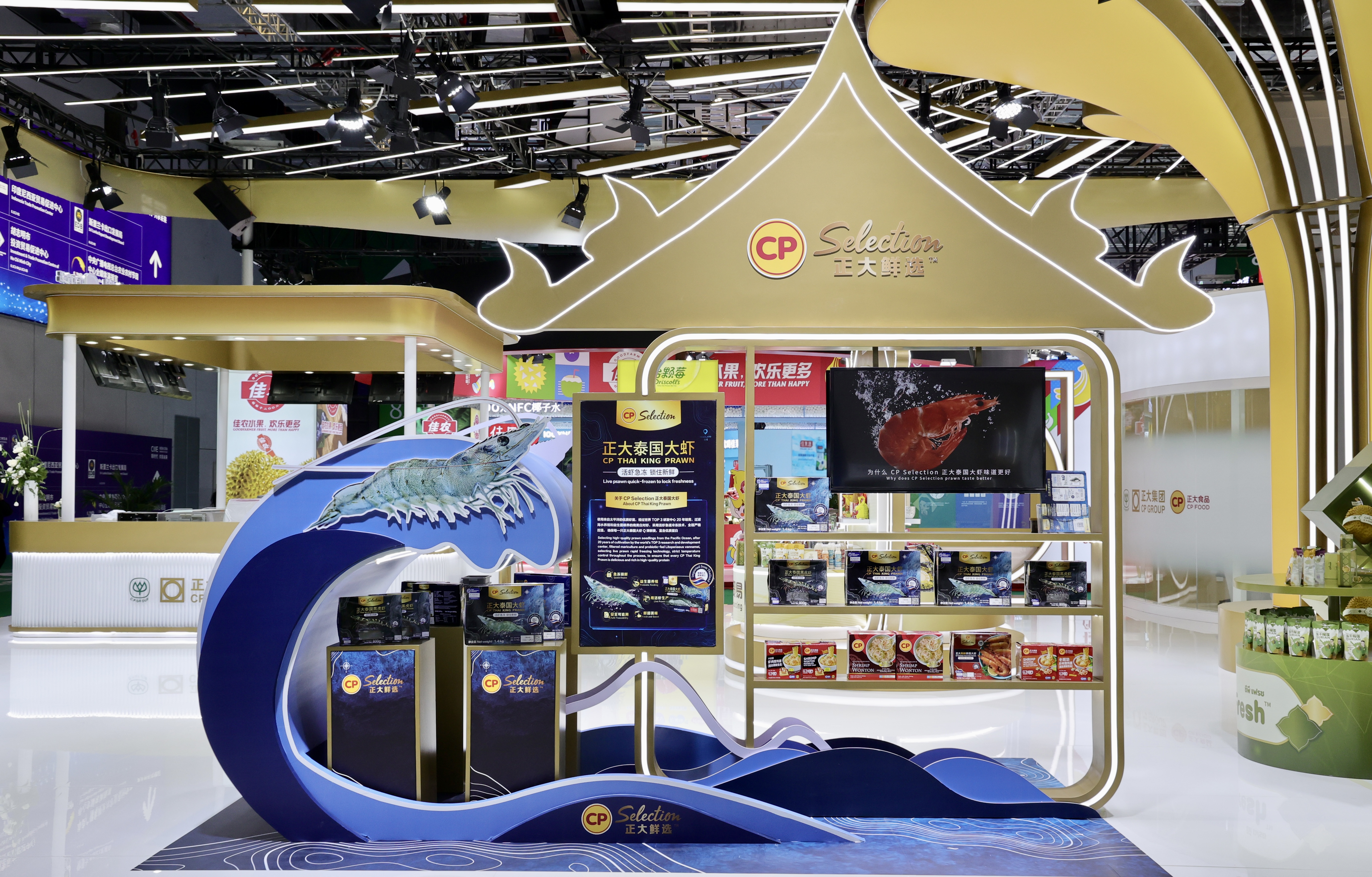 本屆進(jìn)博會(huì)上,正大集團(tuán)組織20個(gè)業(yè)務(wù)板塊參展,共231款產(chǎn)品,涵蓋了正大泰國大蝦、CP Fresh泰國水果、醬料產(chǎn)品、泰國大米、預(yù)包裝食品、主食類、油炸小食、水產(chǎn)、香腸、雞蛋、豬肉、雞肉、榴蓮制品、鱷魚產(chǎn)品、水飲、休閑零食、蜂蜜、紅酒、茶葉等。